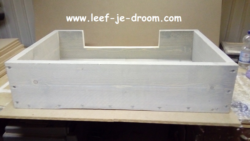 Hondenmand van Steigerhout 84cm bij 56cm zonder pootjes.