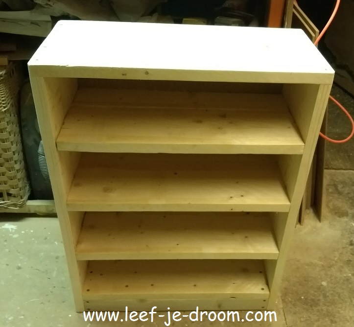 Een op maat gemaakte steigerhoute schoenekast. de afgebeelde schoenenkast heeft een afmeting van +- 33 cm diep, +- 65 cm hoog en +- 65 cm breed.
